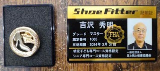 ↑マスターシューフィッターの証明証とバッジ